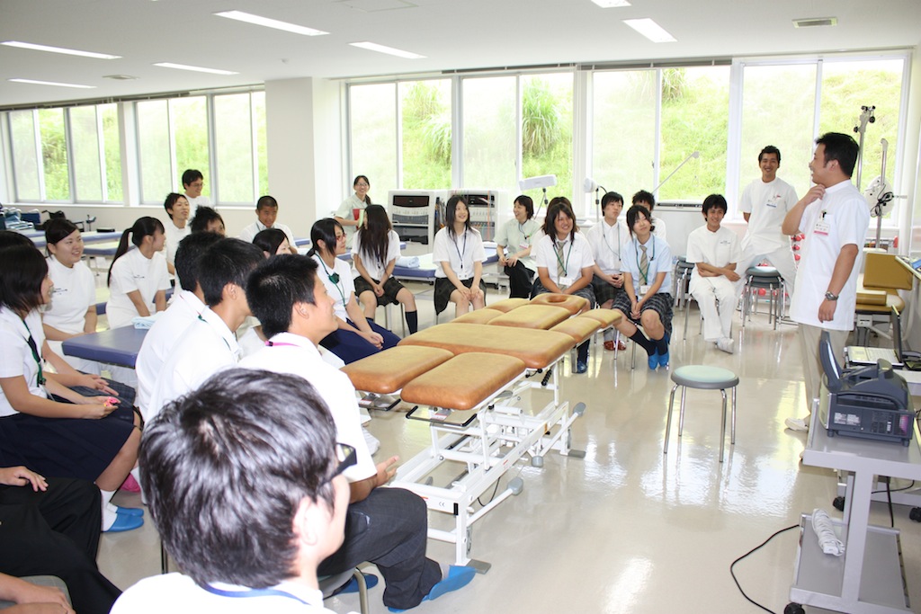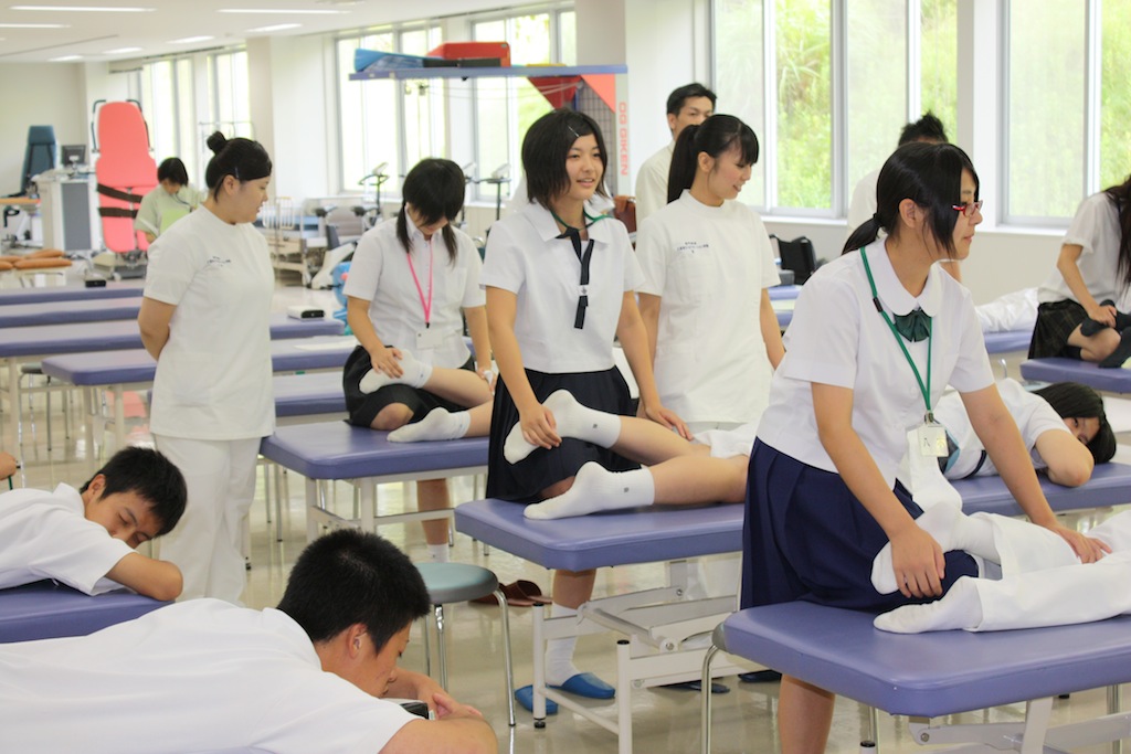 8月15日に、くるリハ理学療法学科教員の金川先生が宮崎県立福島高等学校レスリング部を訪れ、部員10名にストレッチや体のケアについて指導しました。