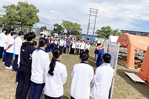 10月26日(日)に地域の「八女地区総合防災訓練」が開催され、消防・自衛隊・医療機関の方々とともに、本学院の学生もボランティアとして参加しました。