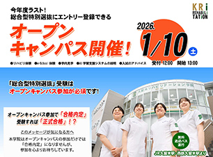 今年度の総合型特別選抜にエントリー登録できるオープンキャンパスを1/10(土)に開催します。理学療法士・作業療法士を目指しているお知り合いがいらっしゃいましたら、ぜひこの機会にご案内いただければ幸いです。